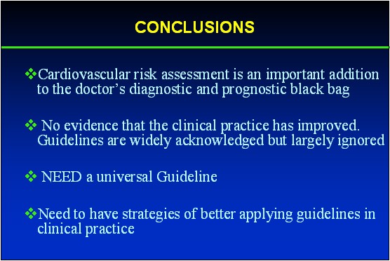Cardiovascular risk assessment is an important addition to the doctor’s diagnostic and prognostic black bag. However, this study shows that there is little evidence the clinical practice has improved. Guidelines are widely acknowledged but largely ignored. Therefore, we need to have a universal guideline with the new strategies of better applying guideline for management of hypertension as well as of other risk factors in clinical practice with optimal treatment to improve the quality of life of patient: live longer, live healthier, live happier. |